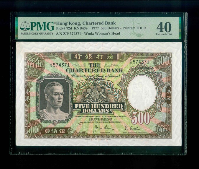 1977 香港渣打銀行 $500 PMG 58 EPQ 編號:Z/P 887763