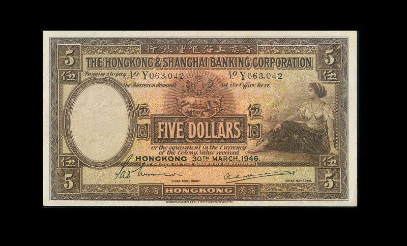 1920 英商香港上海滙豐銀行 $5 PMG 25 編號:582533(Cornor Tip Added)