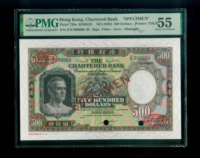 1962ND 香港渣打銀行 $500 PMG 55 編號:Z/N000000(樣鈔,Previously Mounted)