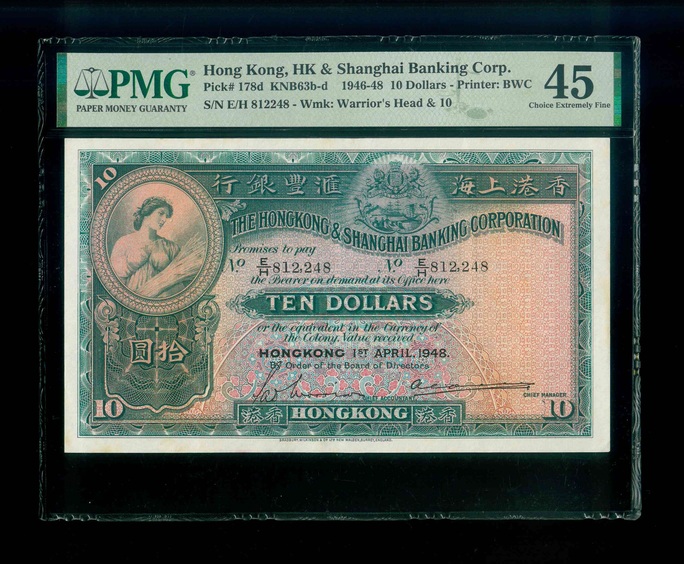 1948 香港上海匯豐銀行$10 PMG 45 編號: E/H 812248