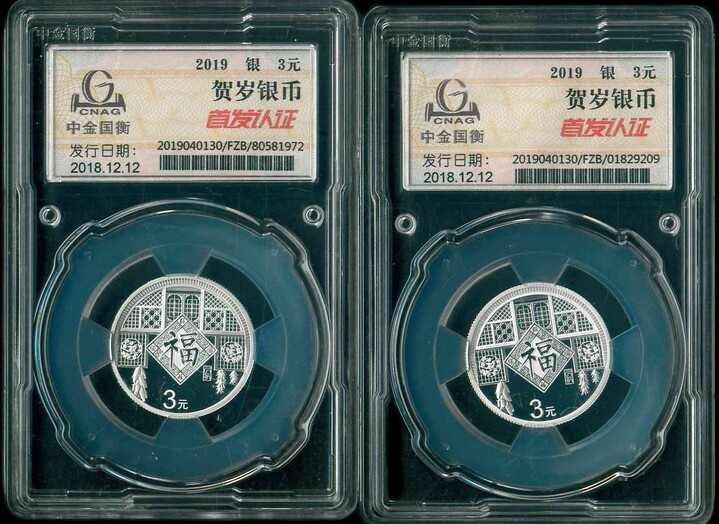 2019 中國賀歲銀幣"福"字 中金國衡 首發認証 編號: 01829209…(共2枚)[非公博評級,自行判斷,售後不退]