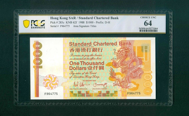 1988 香港渣打銀行 $1000 PCGS 64 編號:F964775