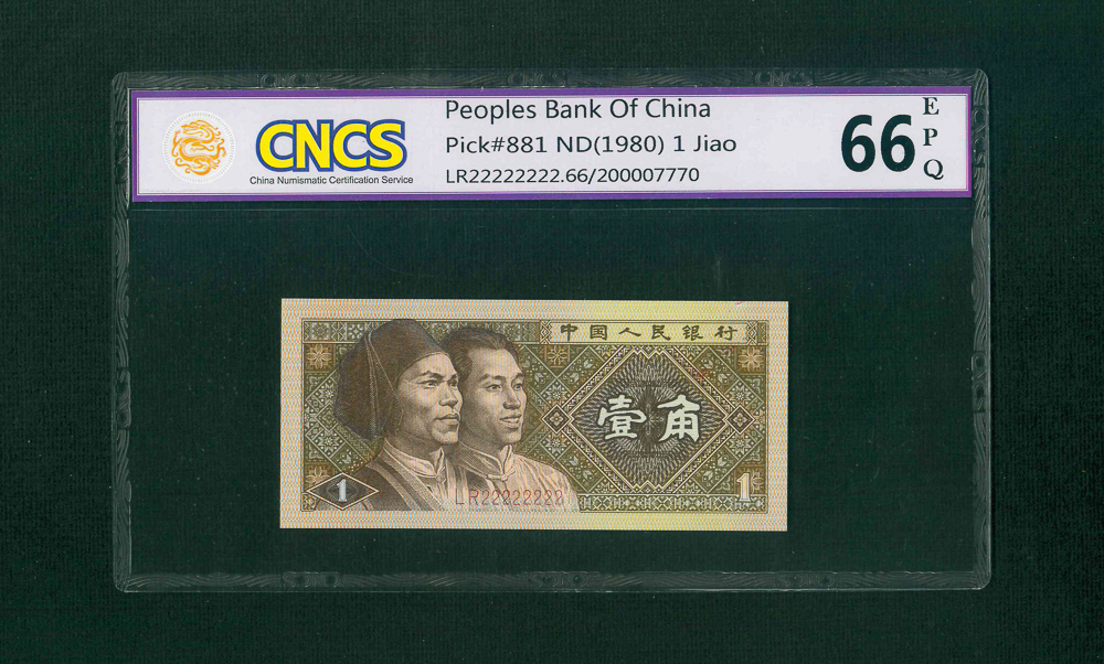 1980 中國人民銀行 壹角 CNCS 66 EPQ 編號: LR22222222, 全2