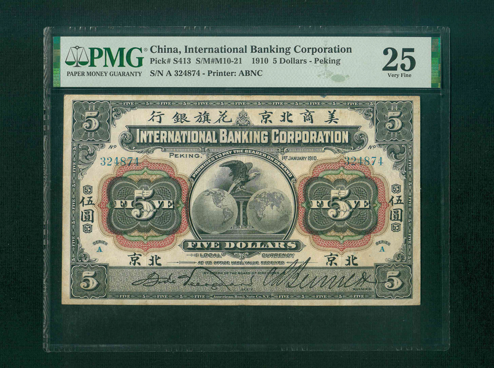 1910 美商北京花旗銀行$5 PMG 25 編號: A324874, 外商紙系列, 加蓋北京