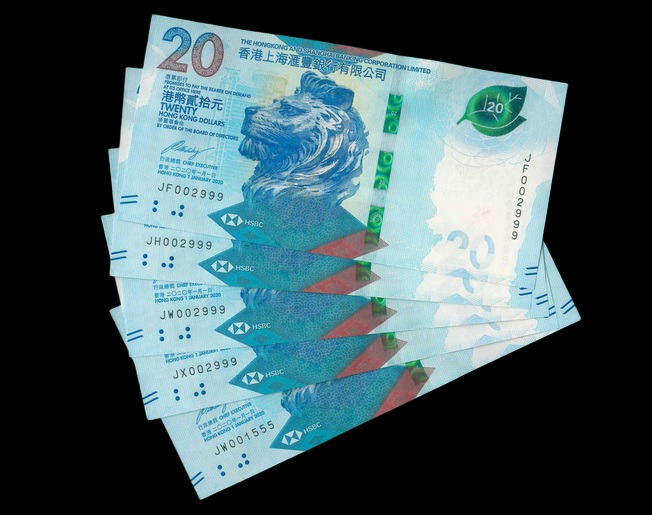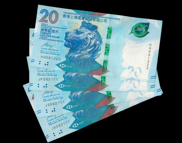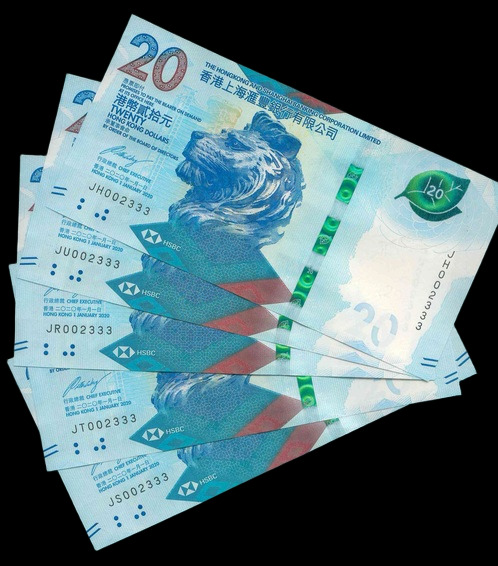 2020 香港上海滙豐銀行 $20 UNC 編號: JH002333...(共5張,豹子同號,頂級雪白)