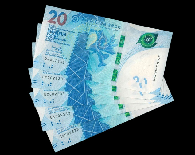 2021 香港中國銀行 $20 UNC 編號: DK002333...(共5張,豹子同號,頂級雪白)