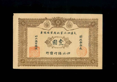 1911 大漢四川軍政府軍用銀票四川銀行 壹圓 EF 編號:4892(工藝品)