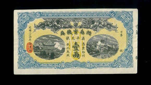 1908 光緒34年湖南官錢局 壹兩 AU 編號:NIL(工藝品)