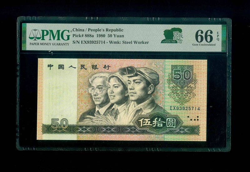 1980 中國人民銀行 $50 PMG 66 EPQ 編號:EX93925714(頂級雪白)