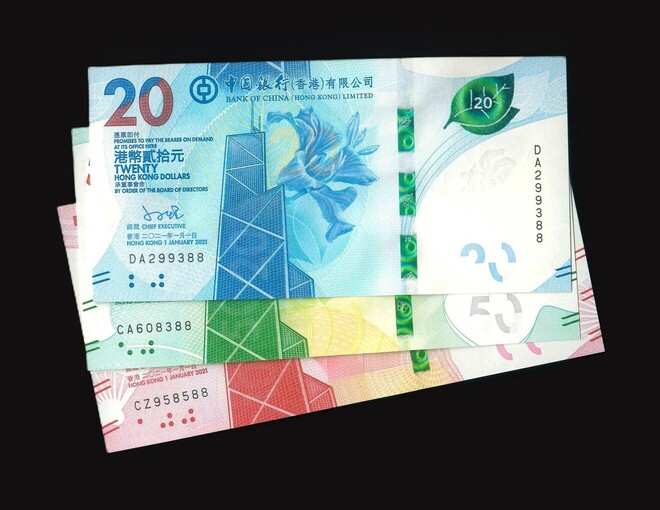2021/2023 香港中國銀行 $20 $50 $100 UNC 編號:DA299388…(共3張,88尾,頂級雪白)