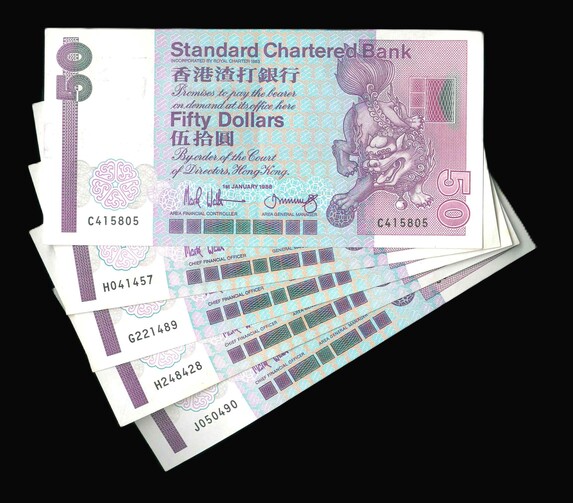 1988-1992 香港渣打銀行 $50 EF-UNC 編號:C415805…(共5張)