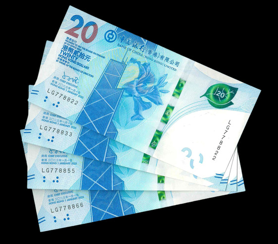 2023 香港中國銀行 $20 UNC 編號:LG778822...(共4張,三對子)