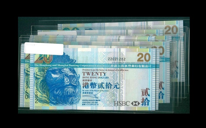 2003 香港上海滙豐銀行 $20 UNC 編號:ZZ073555…(共10張,含豹子/連號)