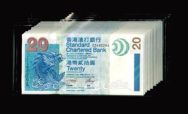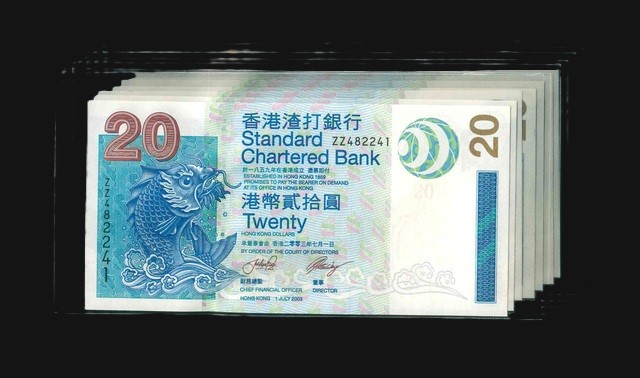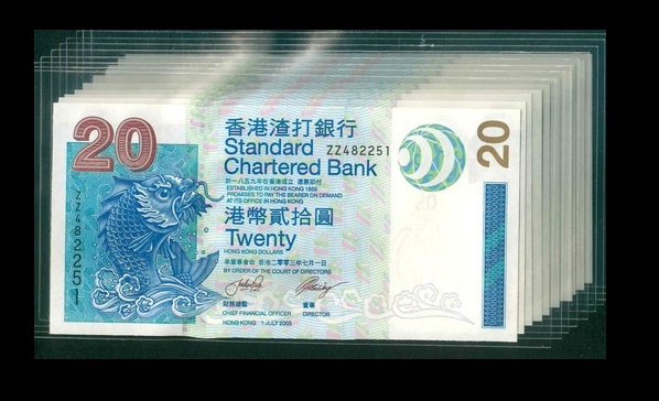 2003 香港渣打銀行 $20 UNC 編號:ZZ482264-73(共10張,連號,補版系列)