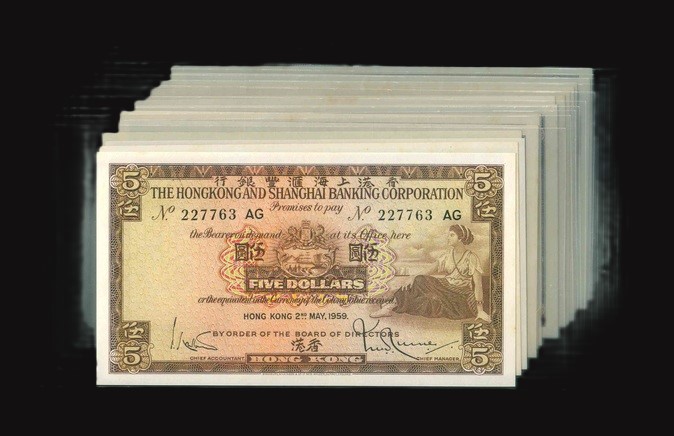 1959-1975 香港上海滙豐銀行 $5 AU-UNC 編號:227763 AG…(共15張,冇紙胆在內)