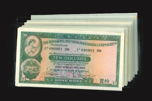 1959-1970 香港上海滙豐銀行 $10 AU-UNC 編號:090901 GN…(共11張,冇紙胆在內)