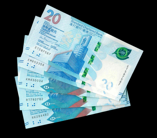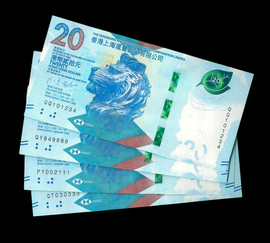 2020/2023 香港上海滙豐銀行 $20 UNC 編號:QN368222…(共5張,豹子號)