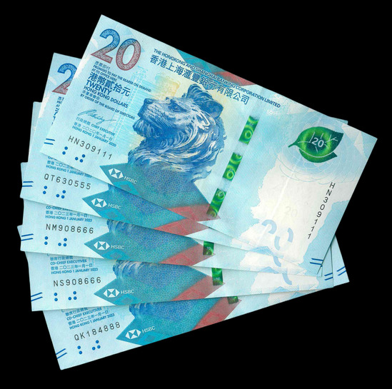 2023 香港上海滙豐銀行 $20 UNC 編號:QF644111…(共5張,豹子號)