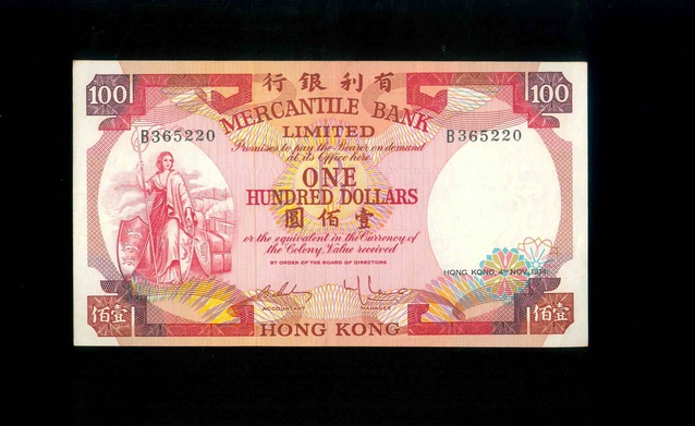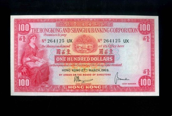 1969 香港上海滙豐銀行 $100 VF 編號:264125 UX