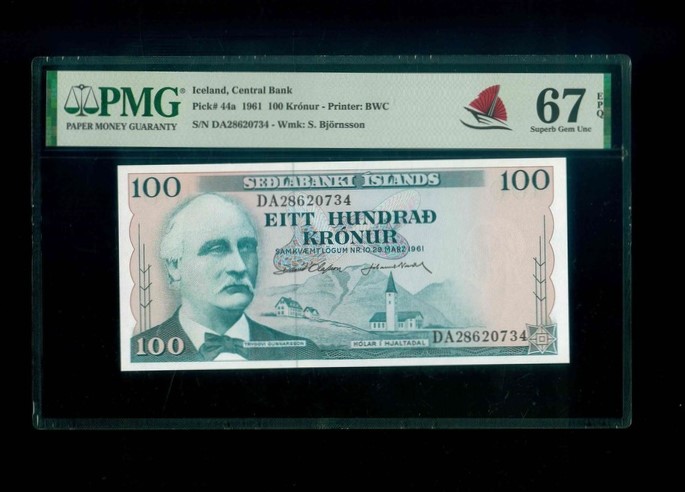1961 冰島 100 Kronur PMG 67 EPQ 編號:DA 28620734