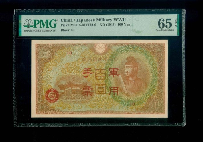 1945ND 日佔時期百圓軍用手票 PMG 65 EPQ 編號:10