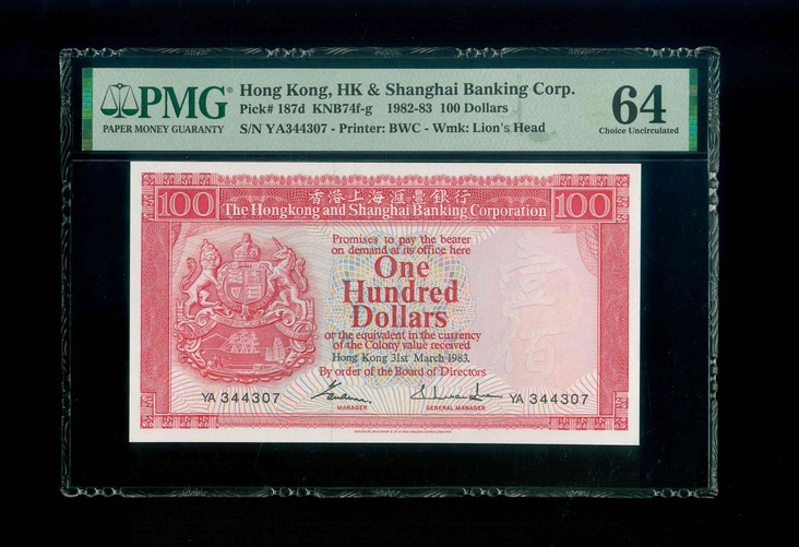 1983 香港上海滙豐銀行 $100 PMG 64 編號:YA 344307