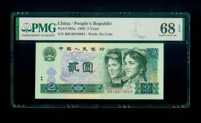 1980 中國人民銀行 $2 PMG 68 EPQ 編號:BR18010864(頂級雪白)