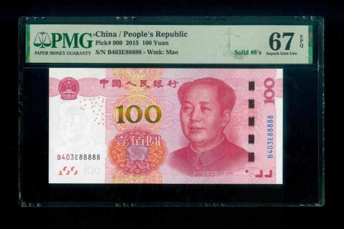 2015 中國人民銀行 $100 PMG 67 EPQ 編號:B403E88888(老虎號,頂級雪白)