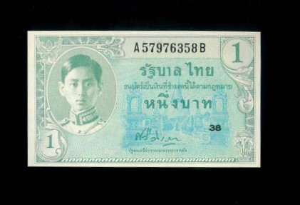 ND 泰國 1 Baht UNC 編號:A57976358B