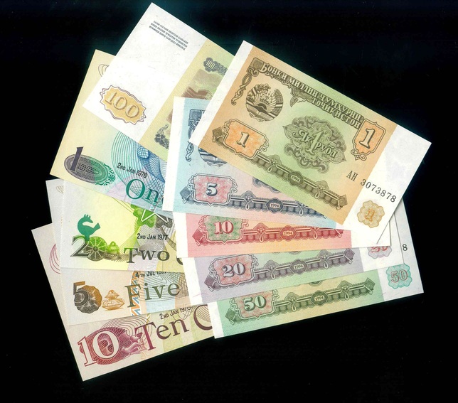 1976-1994 Ghana(迦納) 1-10 Cedis/Tajikistan(塔吉克斯坦)1-100 Ruble UNC 編號:AH 3073878…(共10張)