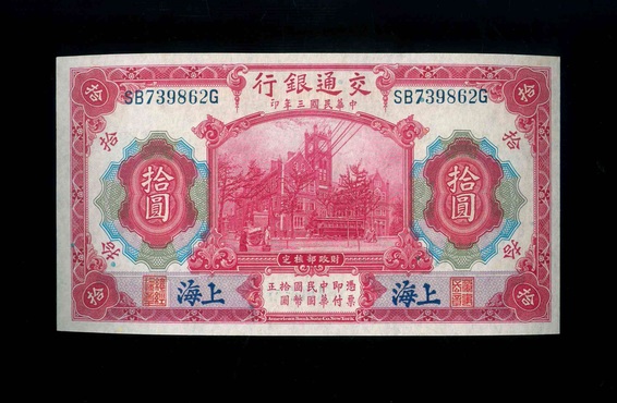 1914 上海文通銀行 $10 UNC 編號:SB739862G