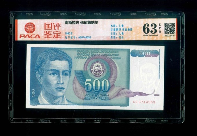 1990 南斯拉夫 500 Dinara PACA 63 EPQ 編號:AS6744553