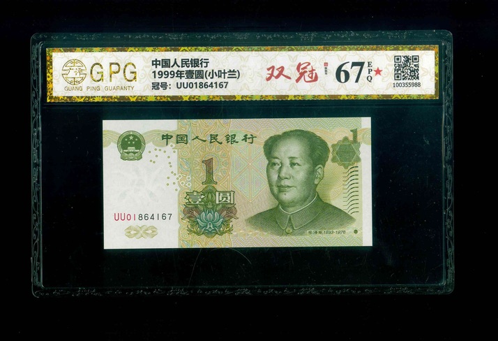 1999 中國人民銀行 $1 GPG 67 EPQ* 編號:UU01864167