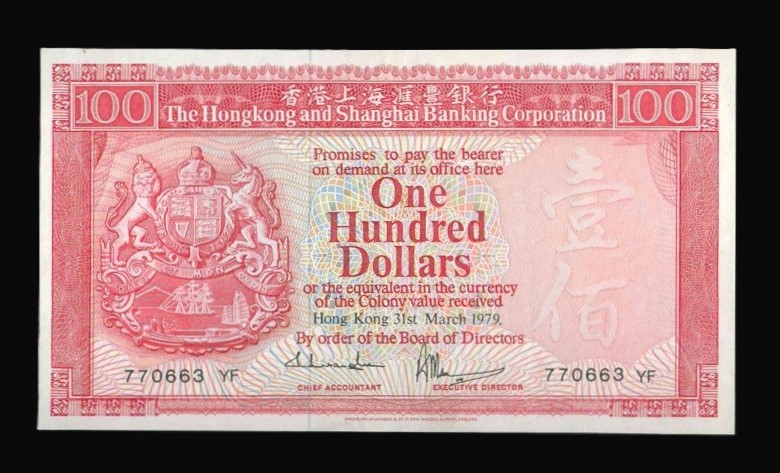 1979 香港上海匯豐銀行$100 EF+ 編號: 770663YF