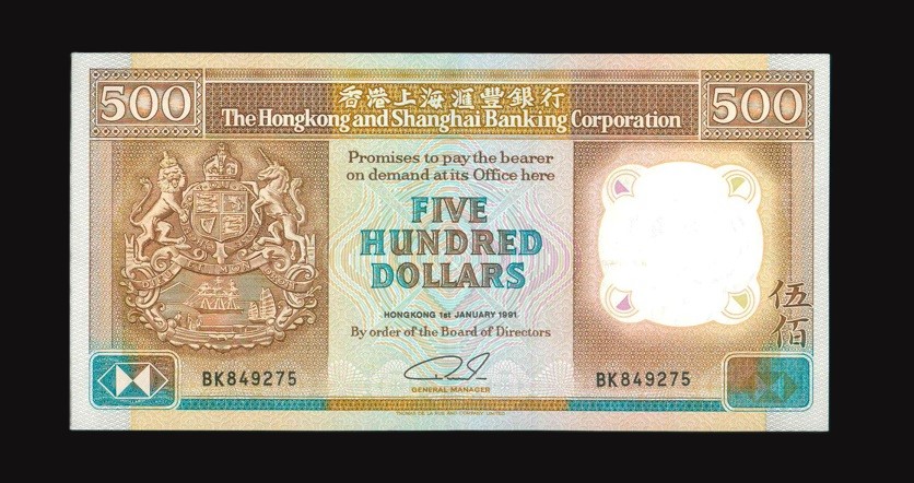 1991 香港上海匯豐銀行$500 AU 編號: BK849275