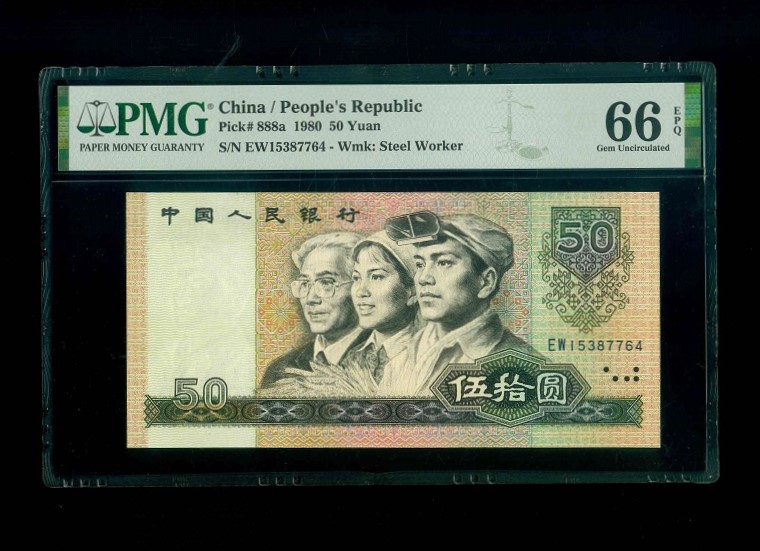 1980 中國人民銀行 $50 PMG 66 EPQ 編號:EQ00960154(頂級雪白)