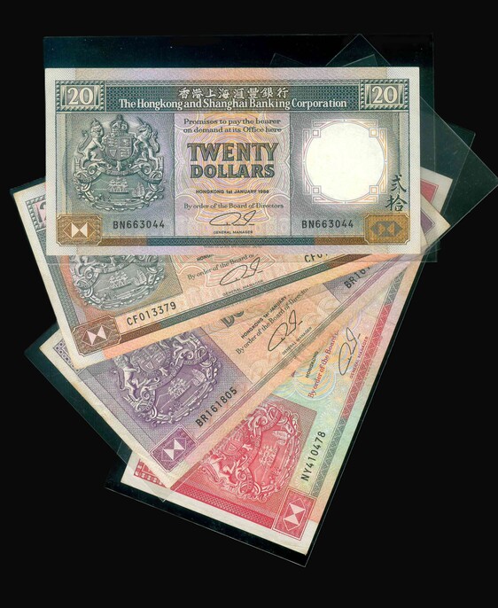 1989-92 香港上海匯豐銀行$20-$100 VF-EF 編號: BN663044…(共4張)