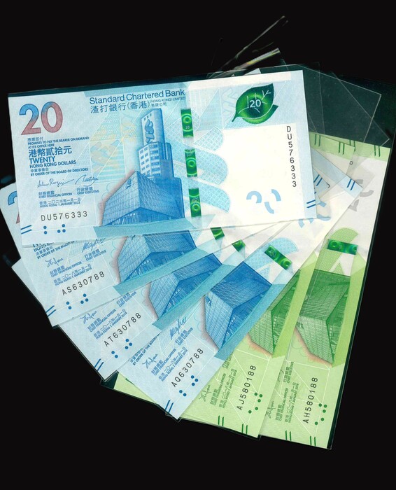 2018-23 香港渣打銀行$20-$50 UNC 編號: DU576333…(同號及豹子,共6張)