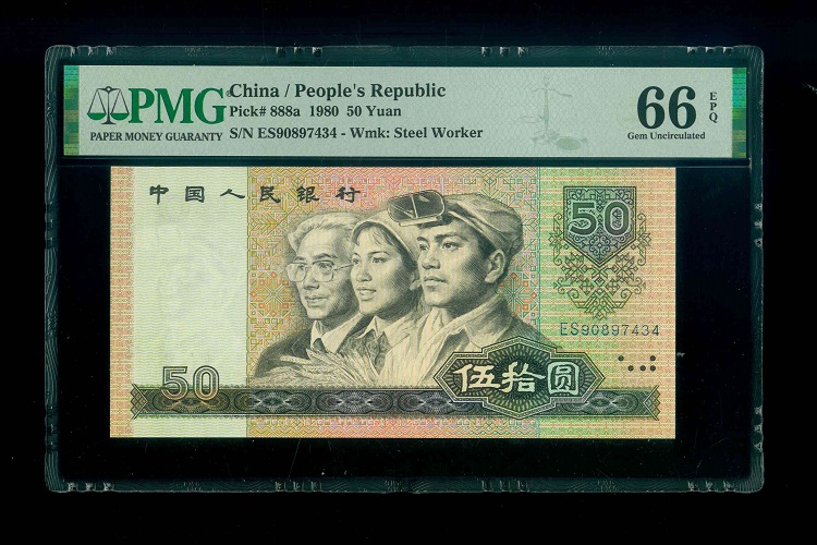 1980 中國人民銀行 $50 PMG 66 EPQ 編號:ES90897434(頂級雪白)