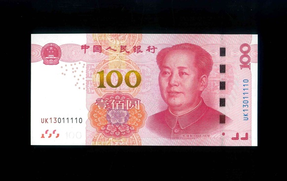 2015 中國人民銀行 $100 UNC 編號:UK13011110(趣味雷達號,頂級雪白)
