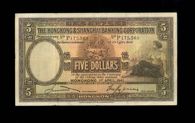 1941 香港上海滙豐銀行 $5 VF 編號:P175563