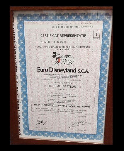 1983 法國巴黎歐洲迪士尼樂園SCA股票證書 品相如圖 編號:NIL