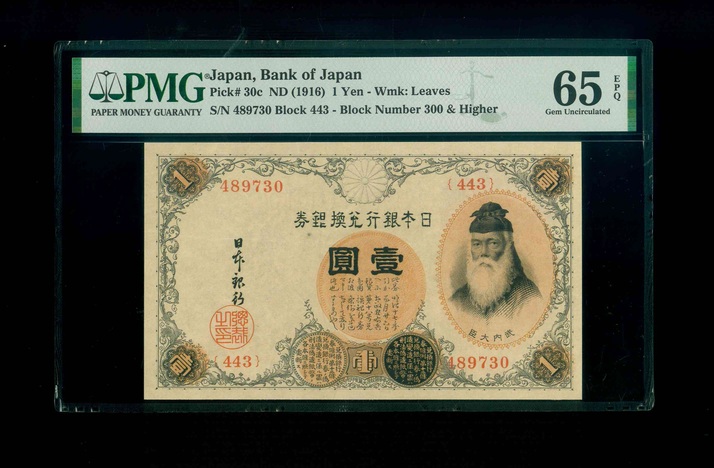 1916ND 日本銀行兌換劵 $1 PMG 65 EPQ 編號:489730(頂級雪白)