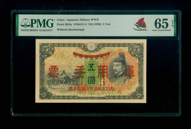 1938ND 日本銀行兌換劵軍用手票 $5 PMG 65 EPQ 編號:NIL(頂級雪白)