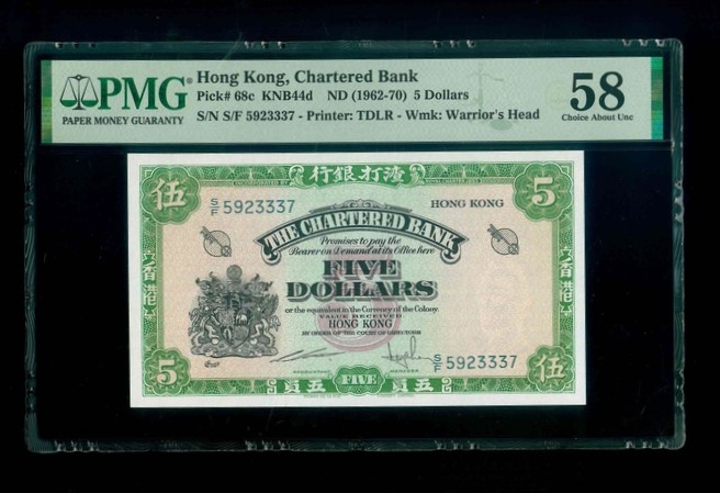 1962-70ND 香港渣打銀行 $5 PMG 58 編號:S/F 5923337