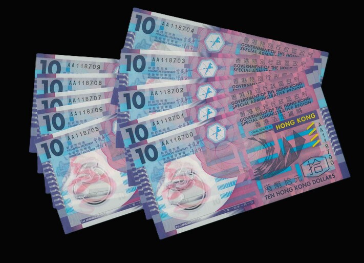 2014 香港政府$10 UNC 編號: AA118700-709(頭版連號,頂級雪白,共10張)