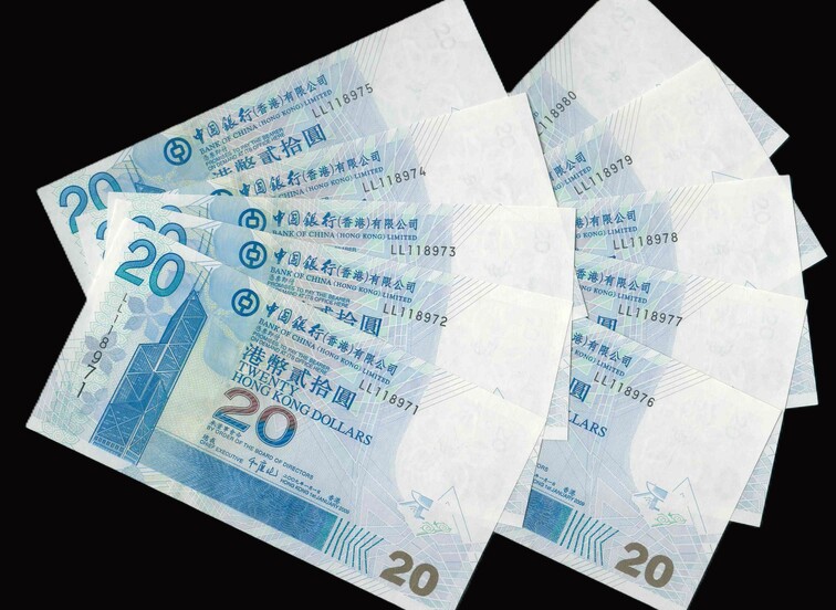 2009 香港中國銀行$20 UNC 編號: LL118971-980(雙冠標準十連,頂級雪白)
