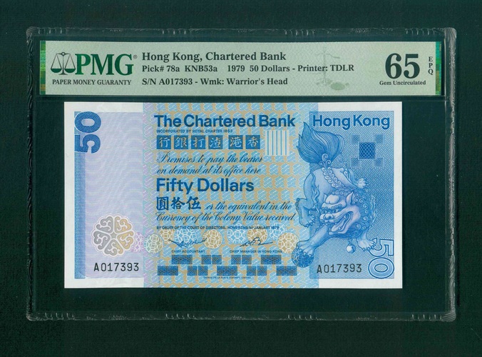 1979 香港渣打銀行 $50 PMG 65 EPQ 編號:A017393