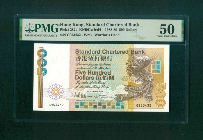 1989 香港渣打銀行 $500 PMG 50 編號:G953432