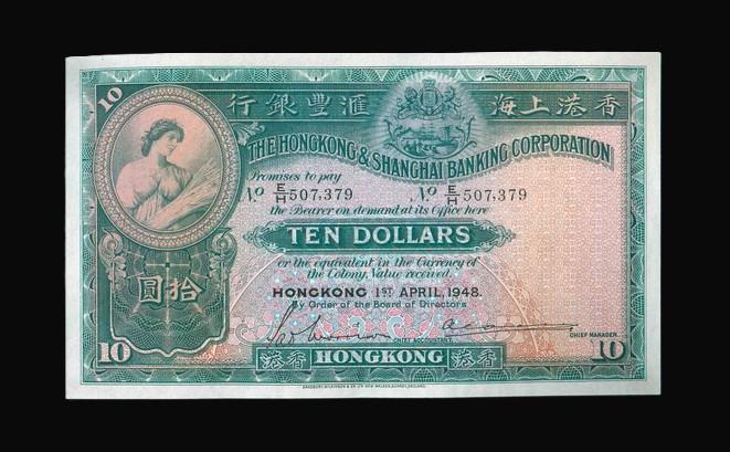 1948 香港上海滙豐銀行 $10 EF 編號:E/H 507379